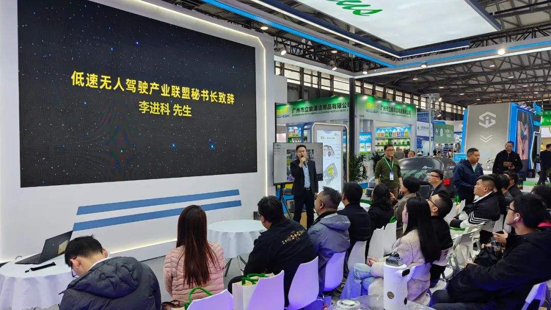 本次上海CCE展上,阿尔飞思隆重召开新品发布会,低速无人驾驶产业联盟秘书长李进科受邀致辞。