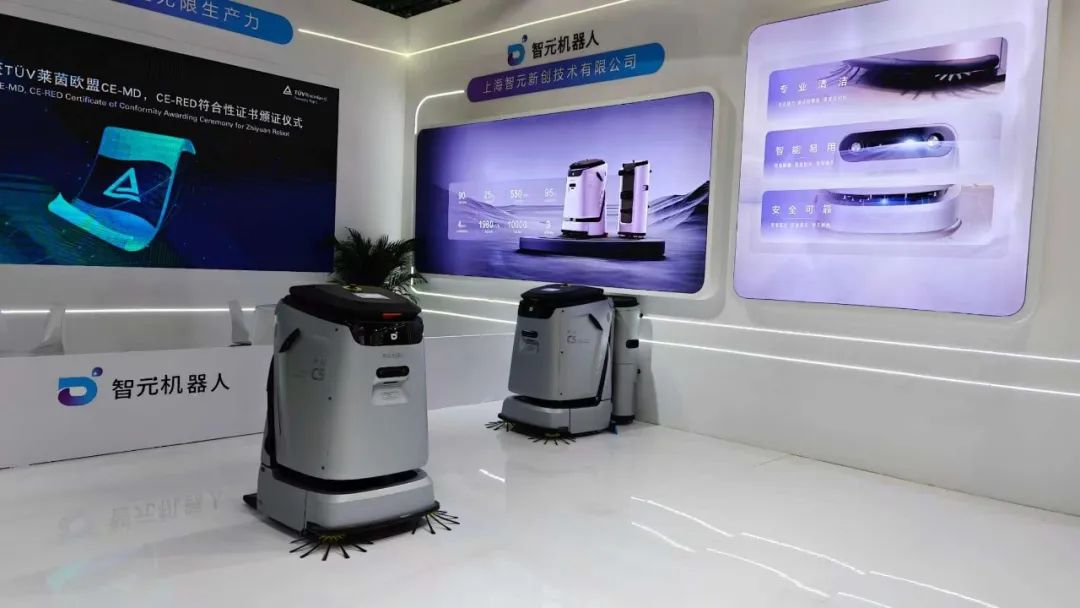 智元机器人重点展出了绝尘系列清洁机器人C5、V5,其中,C5是智元机器人在2024年推出的首款面向中大型场景的智能清洁机器人设备,具备扫地、洗地、尘推等多种清洁功能,满足各类硬质地面清洁所需。