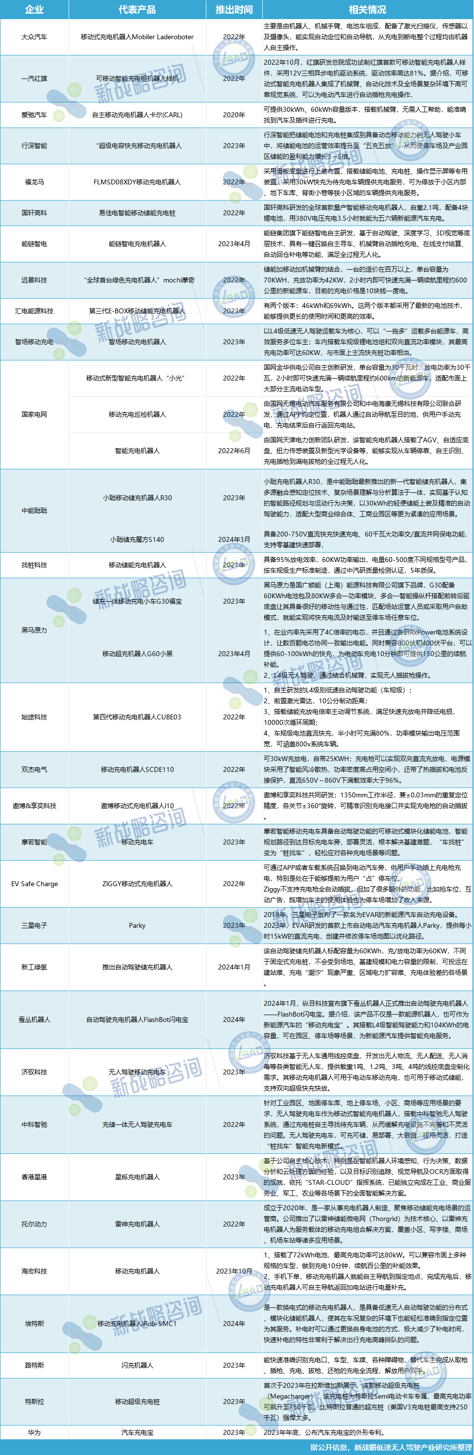 市场的繁荣也吸引越来越多的企业开始布局移动充电机器人领域,据新战略低速无人驾驶产业研究所不完全统计,截至2024年已有有超30家企业在此布局,包括汽车厂商、自动驾驶公司、电网企业、能源厂商、充电服务企业等。