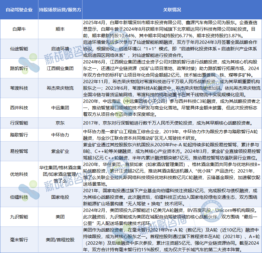 场景运营商们往往选择以资本形式加持自动驾驶科技企业、实现资本深度绑定后,更有利于双方深入开展项目合作。
