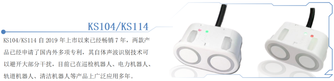 KS114还衍生出了多款针对特殊环境的高性能产品,如KS114N,在零下40℃的极寒低温环境也可以正常工作;KS114NE,可以抗电磁干扰,其允许临近电机布置而不被干扰,而其自体声波识别技术则可以避开大部分同频干扰。这些性能优势,有利于巡检机器人在变电站、配电房等场所保持稳定精准的环境感知。