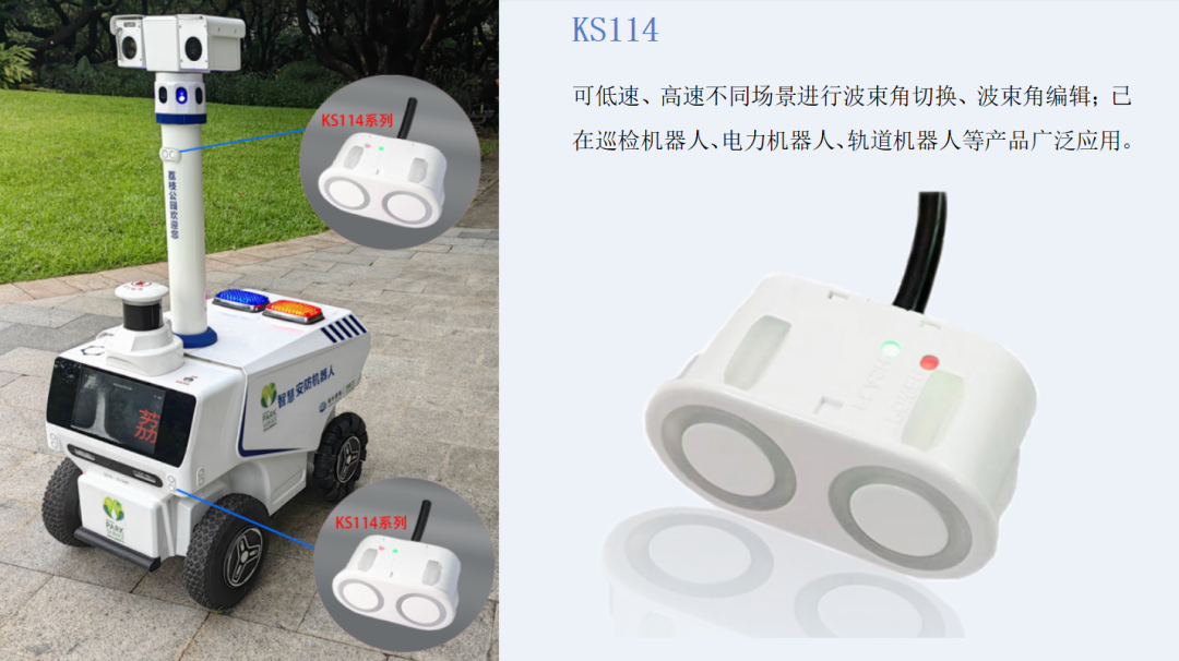 导向公司的超声波雷达产品KS114,自2019年上市以来,已经广泛用于巡检机器人、电力机器人、轨道机器人、清洁机器人等多个领域。该产品经受各种不同恶劣户外环境的考验,无论风吹、日晒、雨淋,均保证了运行零故障率,产品复购率极高。