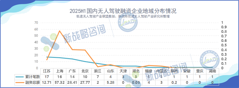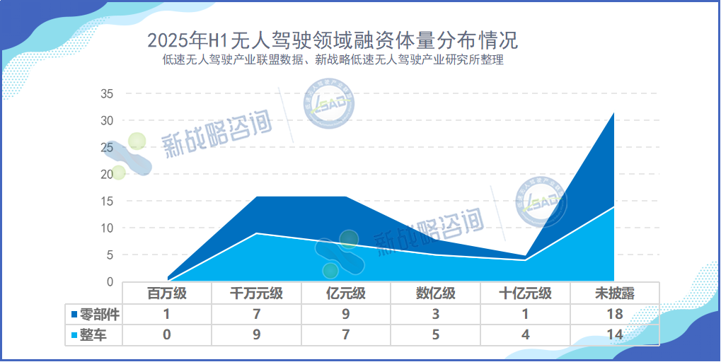 据新战略低速无人驾驶产业研究所不完全统计,2025年上半年,国内无人驾驶领域公开近80起重要投融资,披露的融资总额超135亿元人民币(包括IPO募资)。