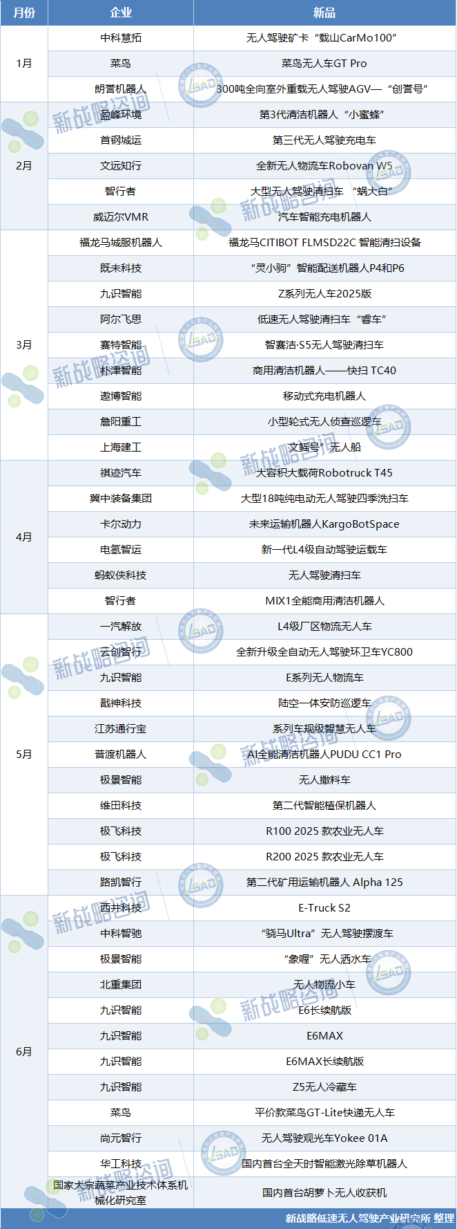 2025上半年国内无人驾驶领域整车新品(根据公开信息整理,如有遗漏,请指正)