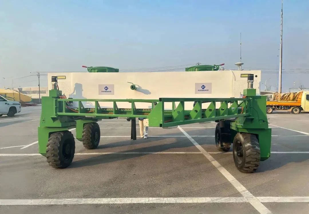 这款无人驾驶喷雾机由潍柴雷沃自主研发,适用于小麦、玉米、大豆等作物的喷药作业,搭载潍柴WP7发动机,喷洒系统配备4000L超大容量药箱和27米长喷杆,作业覆盖范围广。同时,依托高精度导航与智能控制系统,能够实现全自主、高精度的喷药作业,作业效率高,每小时作业量可达400-600亩。还可通过雷沃智慧农业管理平台,实现作业路径规划、实时监控、数据回传与分析等一系列智能化操作。