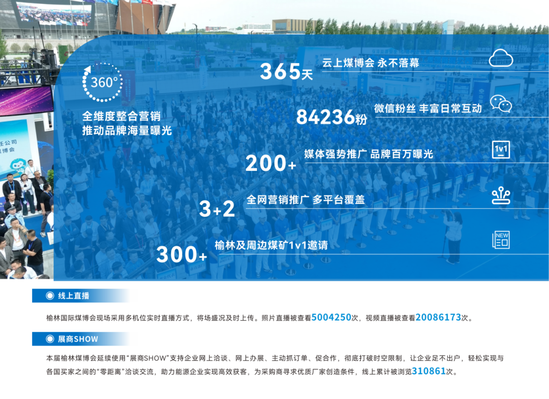 榆林国际煤博会自2006年举办至今,展览面积40万多平方米,参展企业总数达4000多家,是目前我国煤炭及能源化工领域规模最大的展会之一,是榆林市委、市政府主办的大型能源展会,陕西省政府在榆林保留的唯一大型商务活动,榆林市对外交流合作的重要窗口,是榆林向世界传递的一张名片。