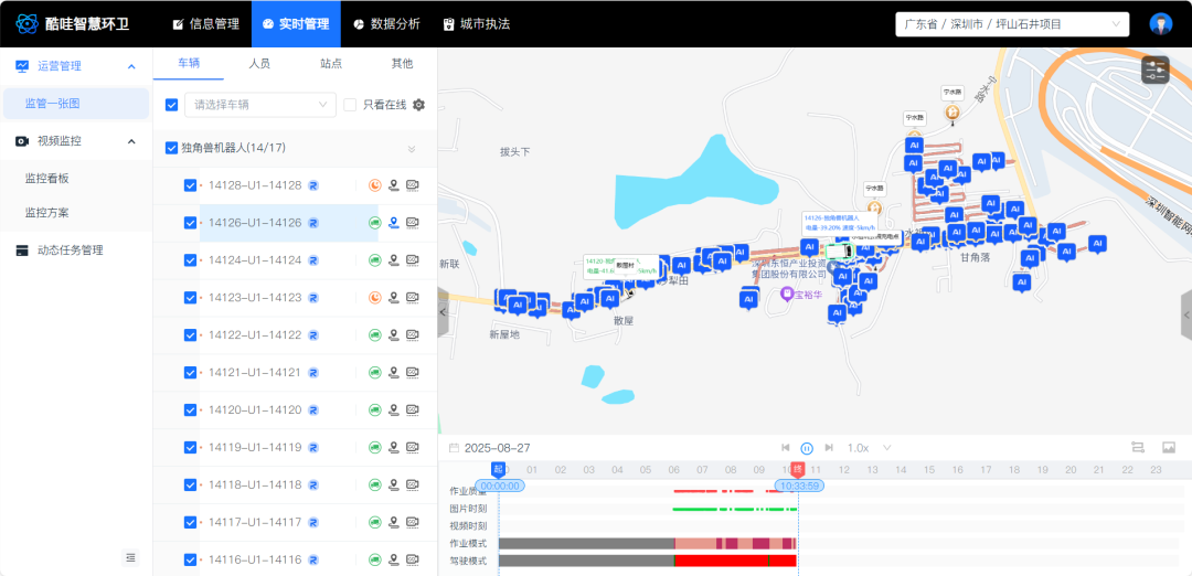 如今,坪山区石井街道人工智能环卫项目已然成为业内公认的标杆。