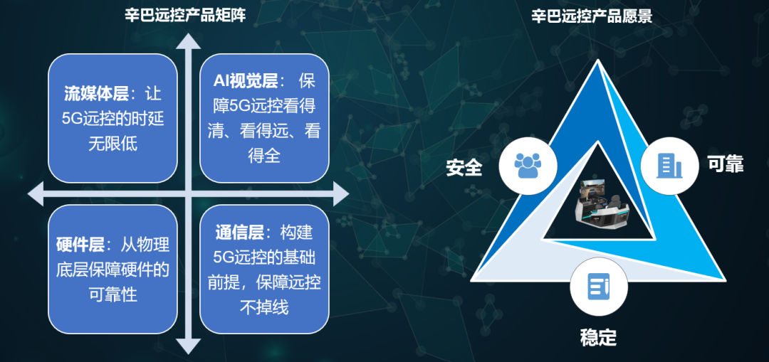 据了解,为了实现5G远控“低时延、高可靠、高安全、看的清、看得远”的目标,辛巴科技的解决方案构建了六大远控堡垒防护技能:
