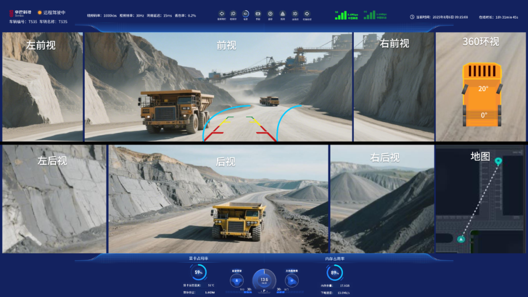该功能可适配矿山、港口、物流等多种场景,结合5G低延时传输特性,让远程操控员能够实时掌握车辆周边动态,为驾驶安全构建起“无死角”的防护屏障。
