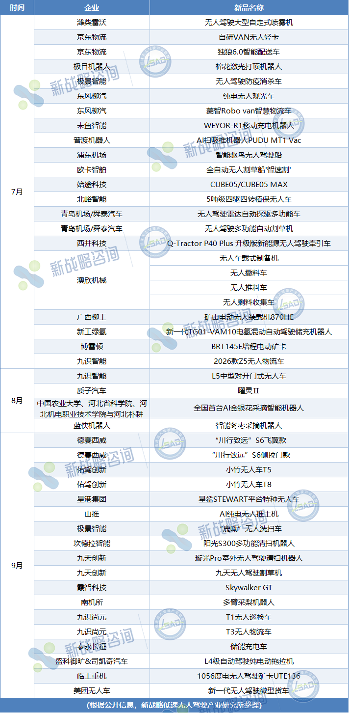 2025年第三季度部分无人车新品(未完善之处请指正)