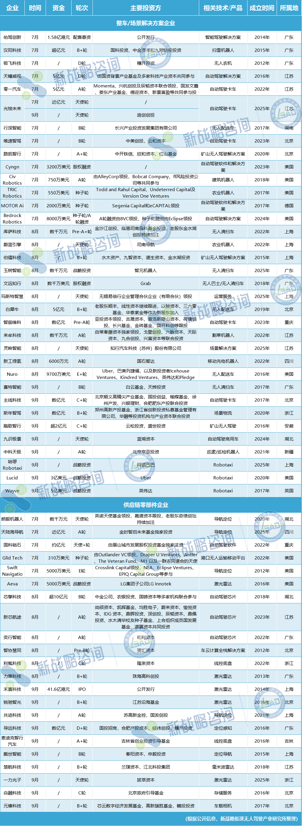 2025第三季度低速无人驾驶领域融资情况(未完善之处请指正)