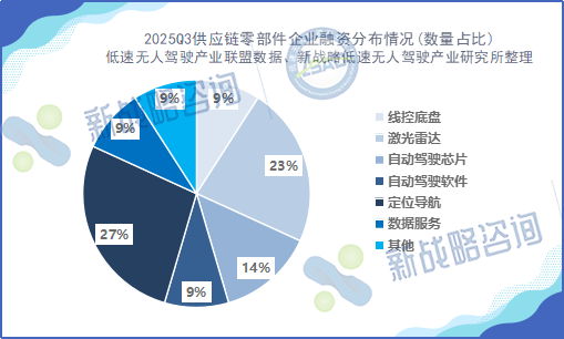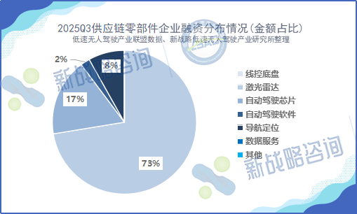 总体来看,2025年第三季度行业融资情况对比2024年同期,在统计的融资事件数量上相对持平,但披露的总融资金额略有增加;其中,在整车端持续落地快趋势下,零部件端迎来资本补涨。虽然自动驾驶卡车等仍是投资“压舱石”,但激光雷达、自动驾驶芯片、定位导航等关键零部件,正成为决定下一阶段行业竞争力的“杠杆点”。