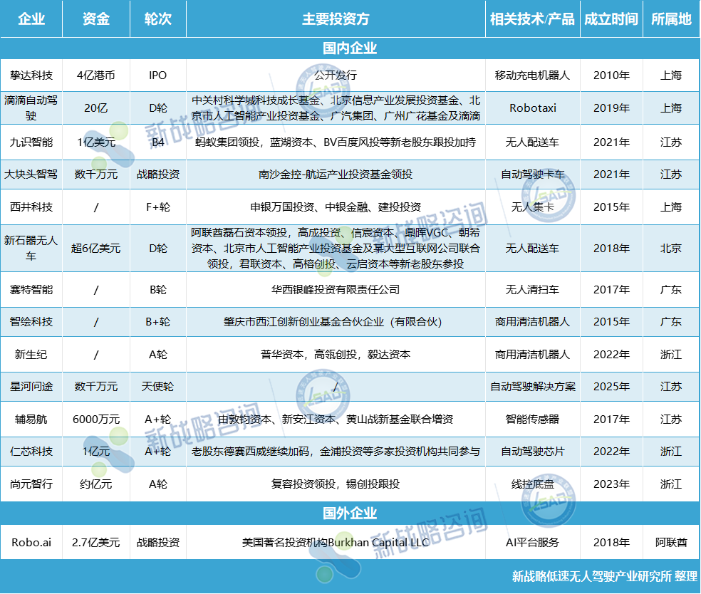 据新战略低速无人驾驶产业研究所不完全统计,2025年10月,国内外自动驾驶领域公开14起重要投融资事件,披露的融资总金额超96亿元(汇率按1美元≈7.14元估算),涵盖IPO、D轮等多轮次投资。