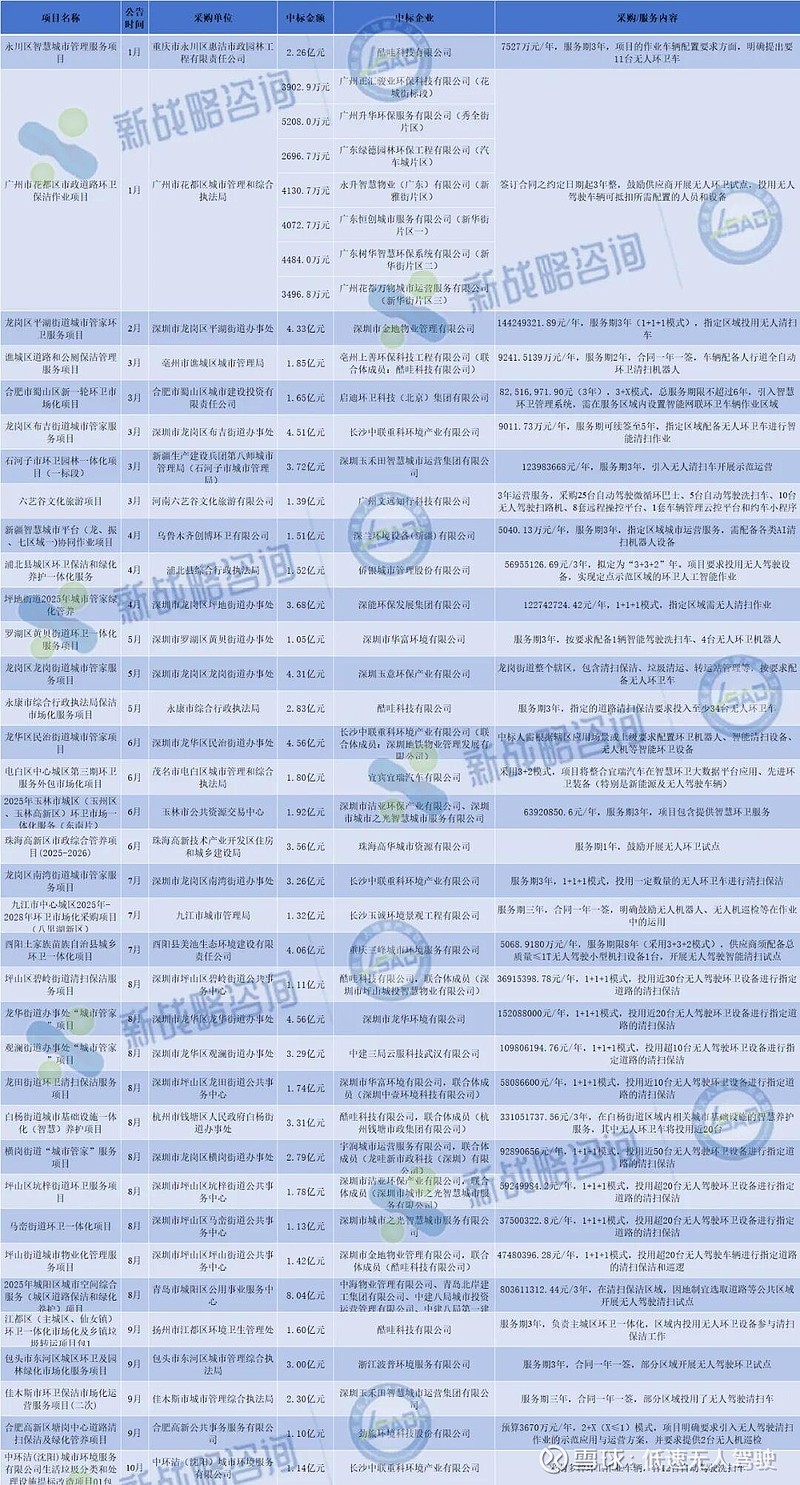 2025年无人环卫领域亿元级别中标项目
