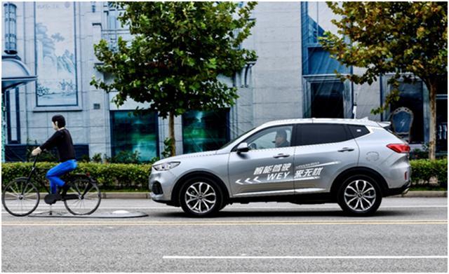 在上海安亭的国家智能网联汽车(上海)试点示范区实际试驾时,WEY VV6行驶至十字路口,汽车、行人及自行车模拟装置突然进入,AEB主动式紧急制动系统触发并完美规避风险,它可识别车辆、行人、自行车。