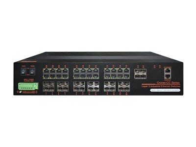 24端口千兆电+4个万兆SFP+扩展槽, Layer3 工业以太网交换机,支持策略路由,模组式 |